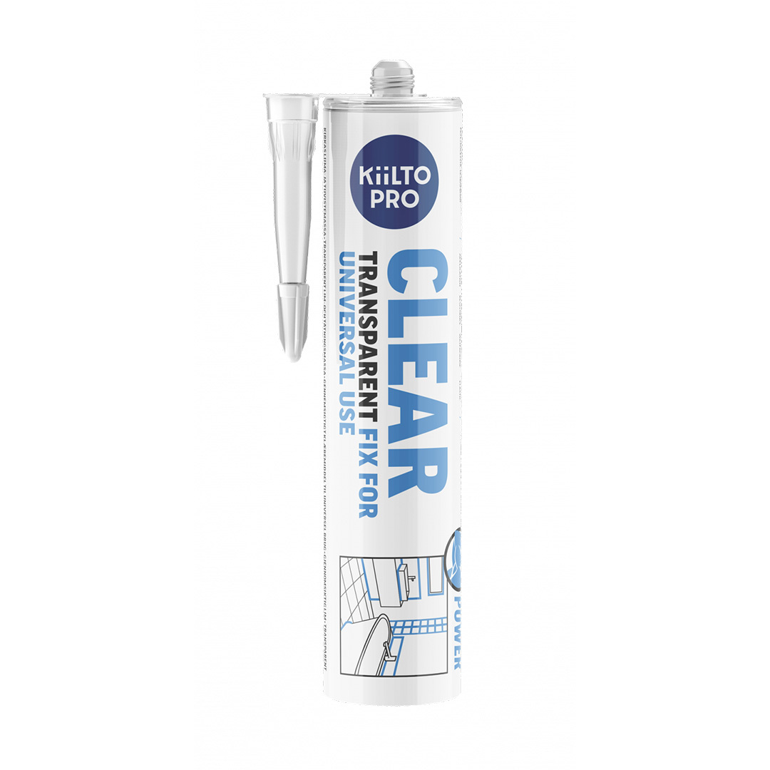 Värvitu ja elastne liimhermeetik kasutamiseks sise- ja välistingimustes. Lihtne peale kanda. Sobib näiteks WC-pottide, peeglite ja klaasploki kinnitamiseks. Sobib ka looduskivile ja nihkevuukidesse. Ühekomponentne Kiilto Clear liimi- ja tihendusmass on silüülpolümeertehnoloogial põhinev värvitu elastne hermeetik.