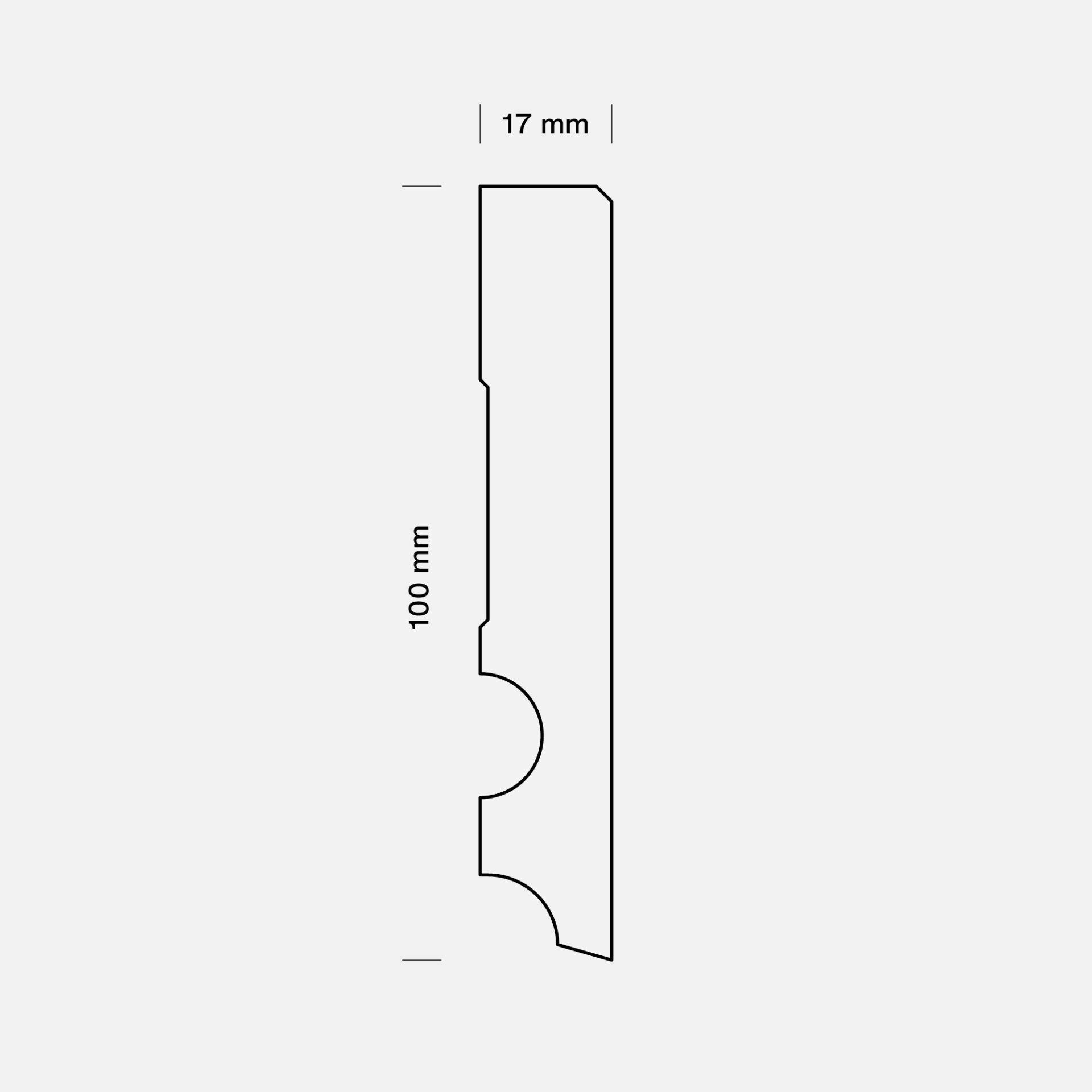 SOKLILIIST MDF sile valge ülevärvitav (17×100 mm 2,6 m pk=5tk)